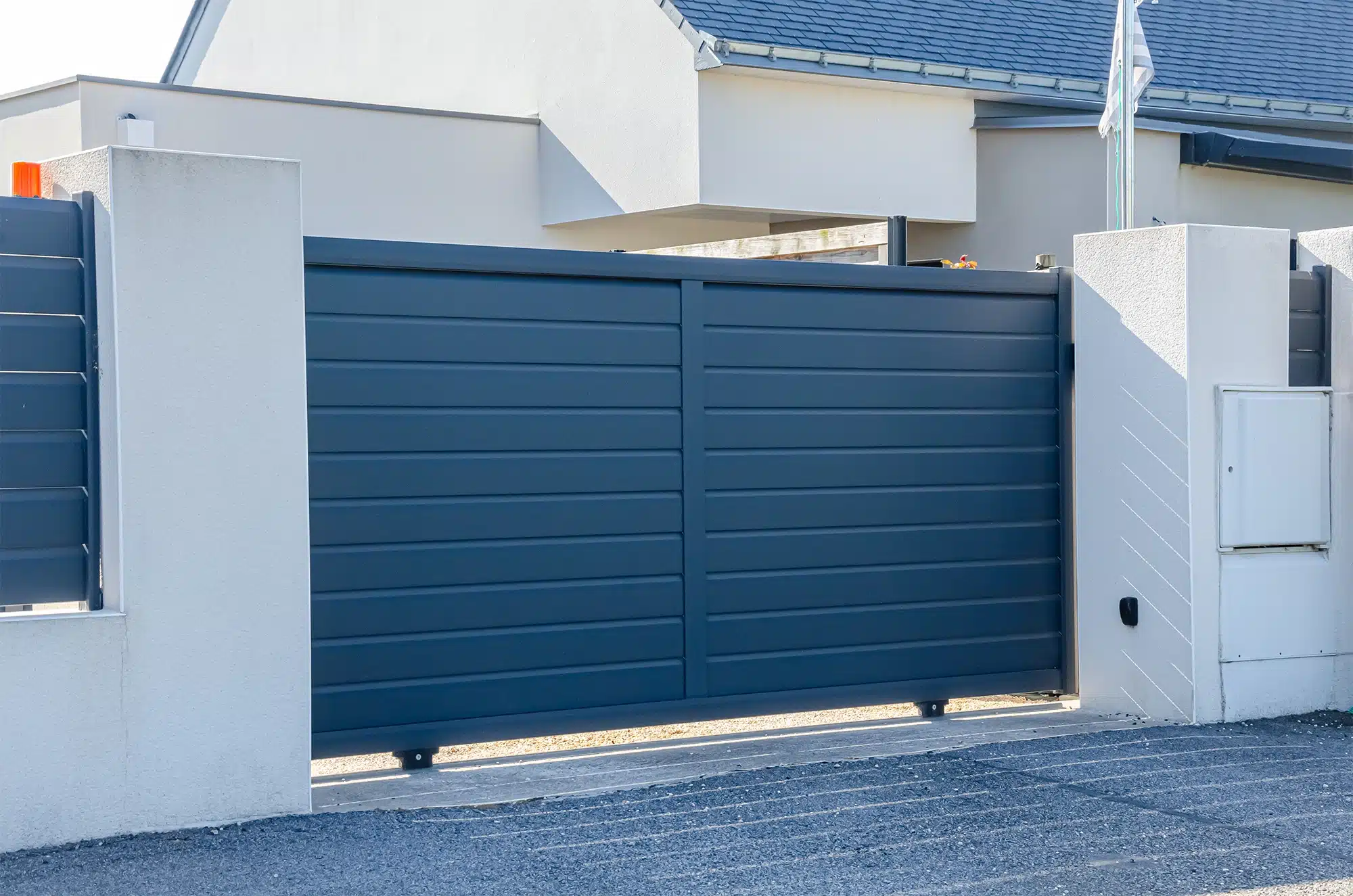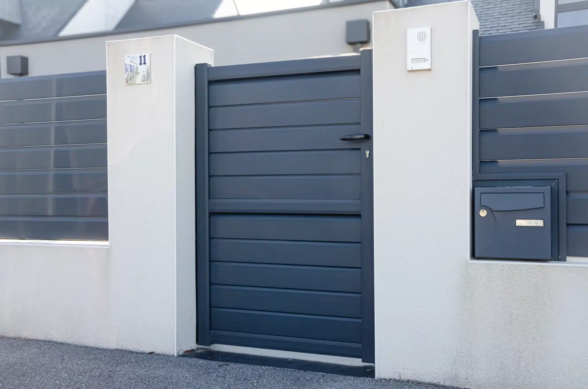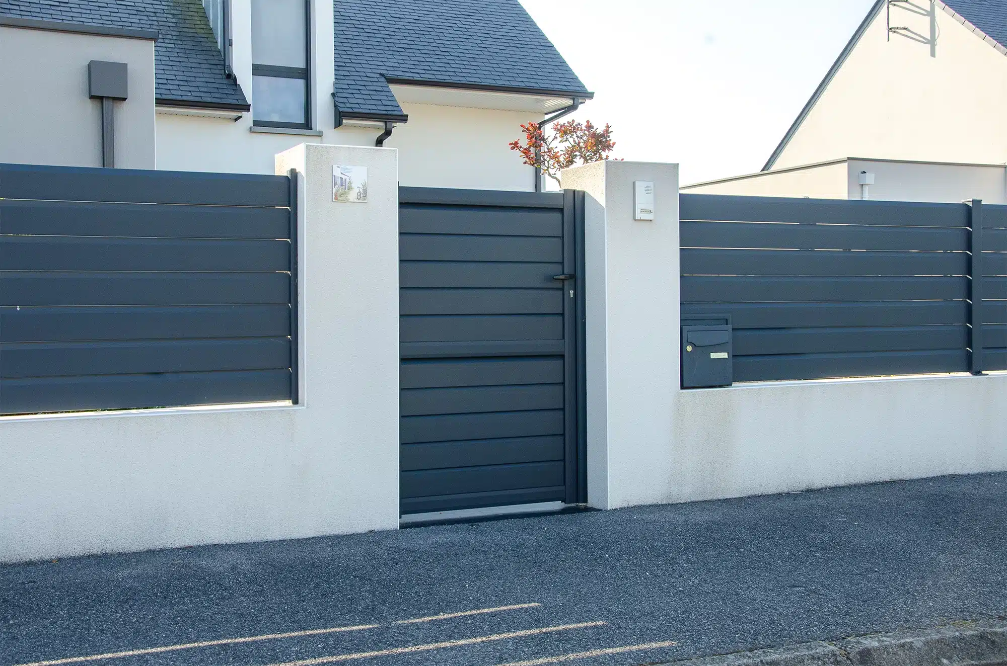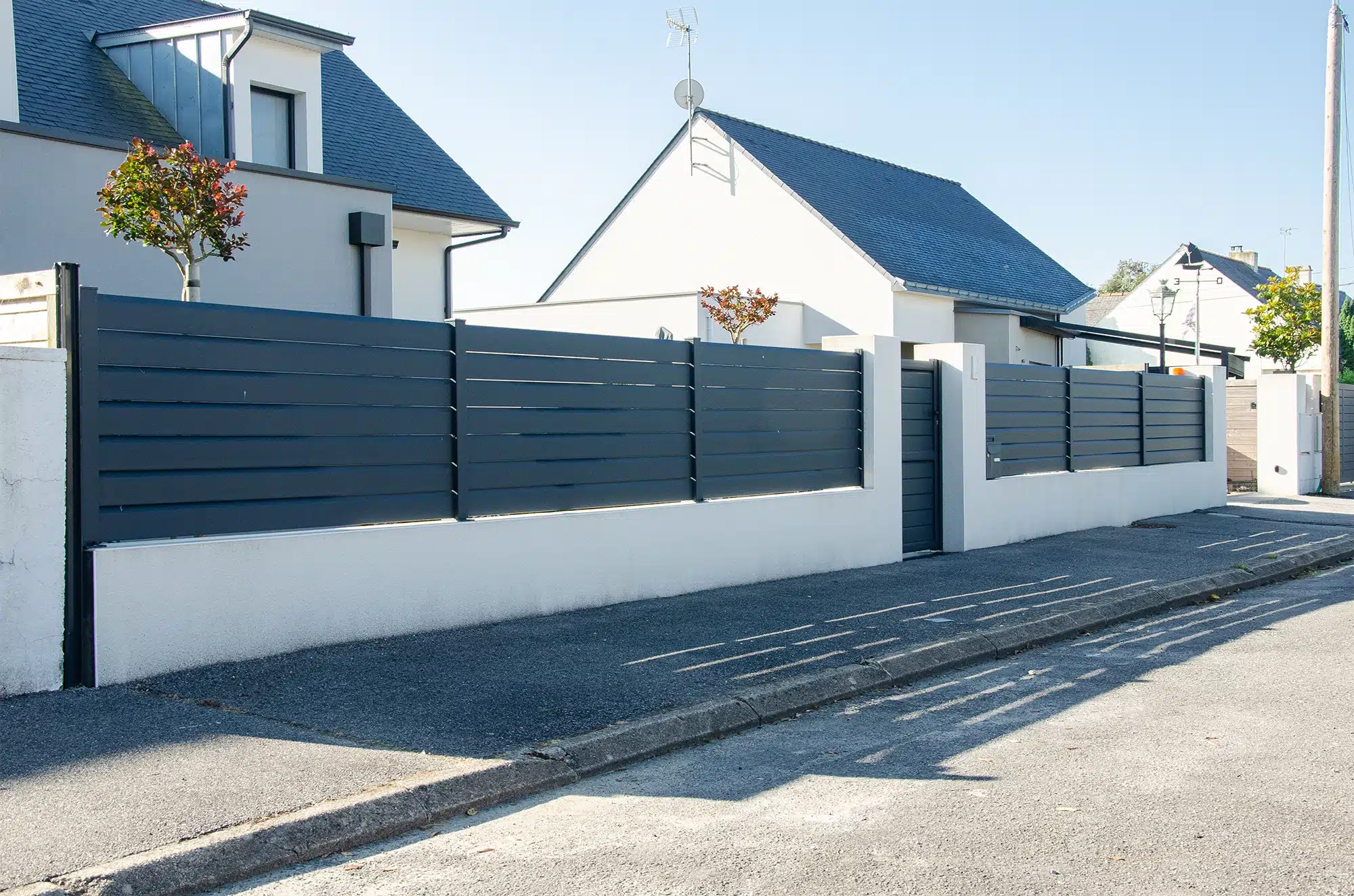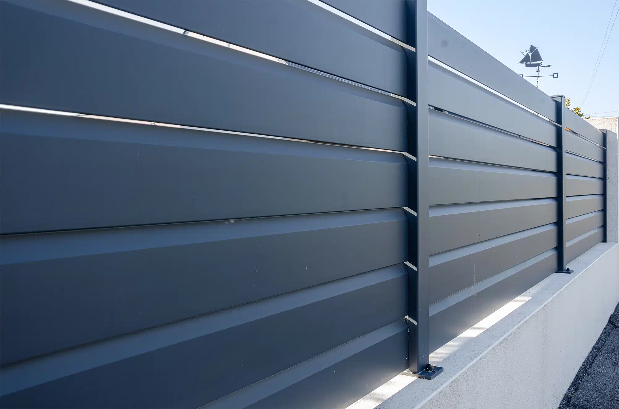 Pour une finition moderne, durable et peu contraignante. L’aluminium résiste bien aux embruns, et le remplissage persienne laisse passer l’air : il y a donc moins de prise au vent, tout en préservant l’intimité sans fermer totalement.