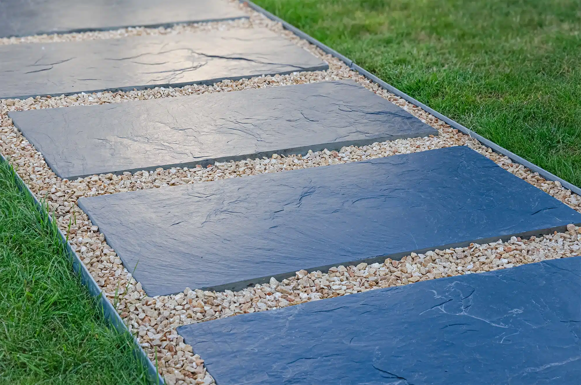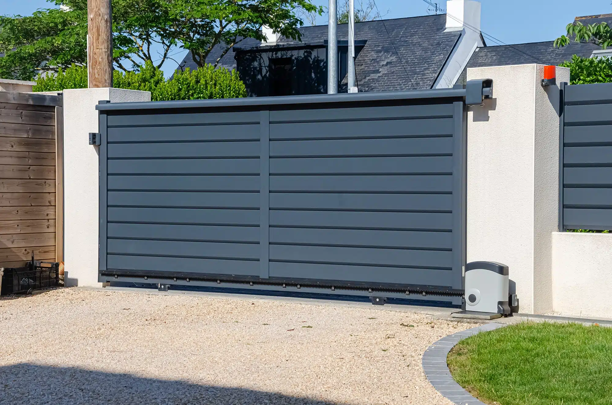 C’est une solution drainante, lumineuse et pratique pour le stationnement, tout en gardant une ambiance sobre et soignée. Le gravier est mis en place sur des dalles alvéolées stabilisatrices, type nid d’abeilles.